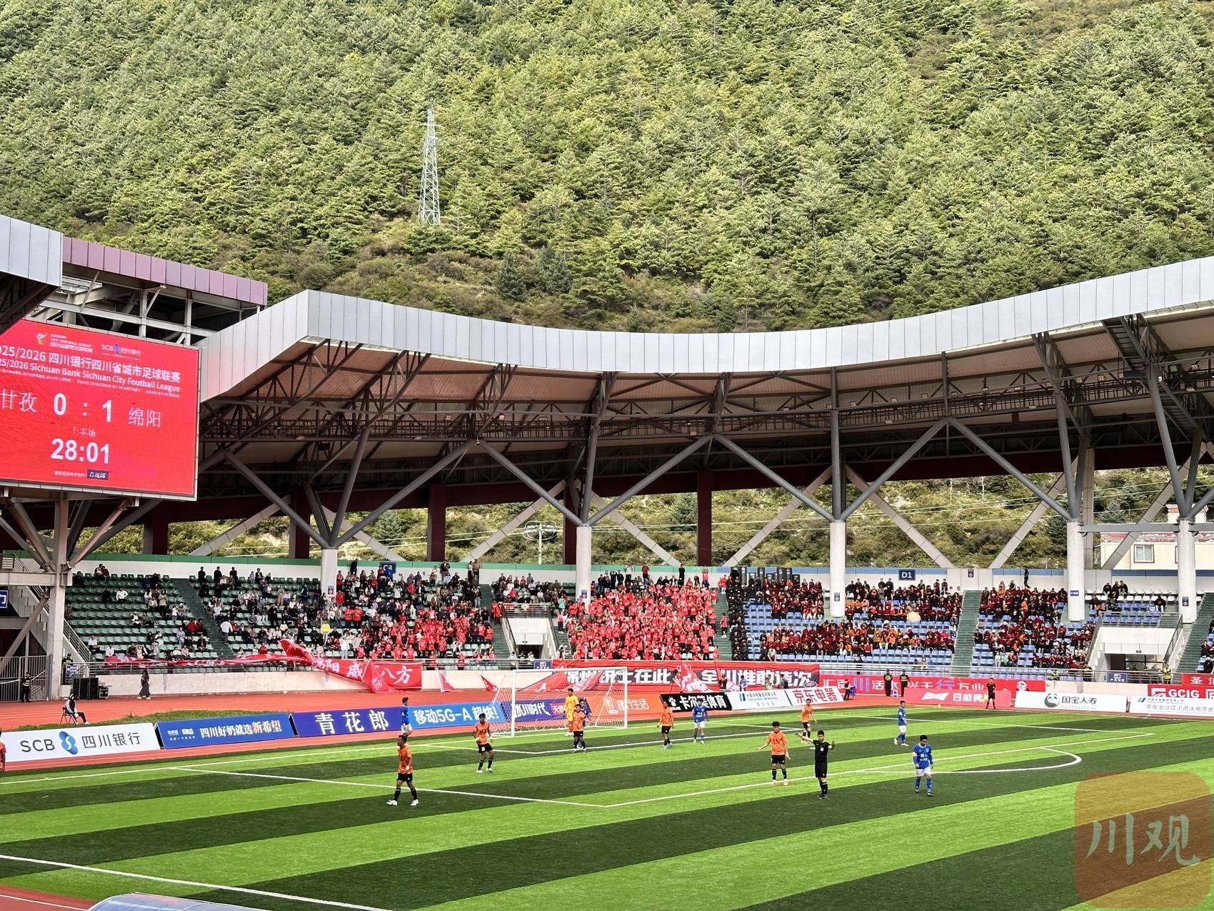 r10月3日下午15时,康定北门体育场内人声鼎沸,“川超”第二轮川北赛区甘孜州有机牦牛队与绵阳九洲长虹队的对决在此激烈上演。